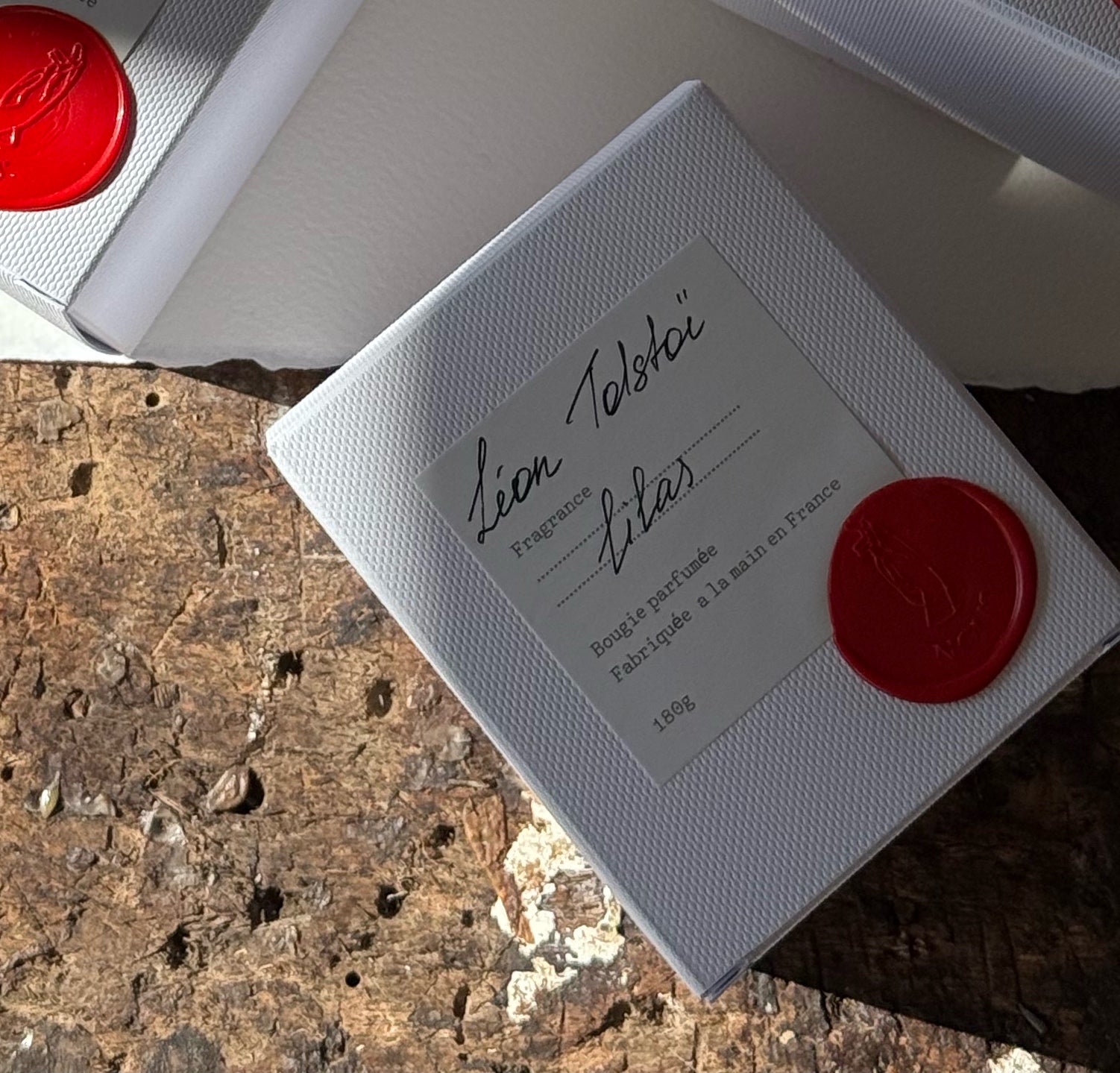 Bougie en cire d'olive, mèche 100% coton et parfum de Grasse. Un bouquet printanier de lilas et des rose, adouci pas l'héliotrope, symbole des amours naissantes dans les vastes domaines russes.